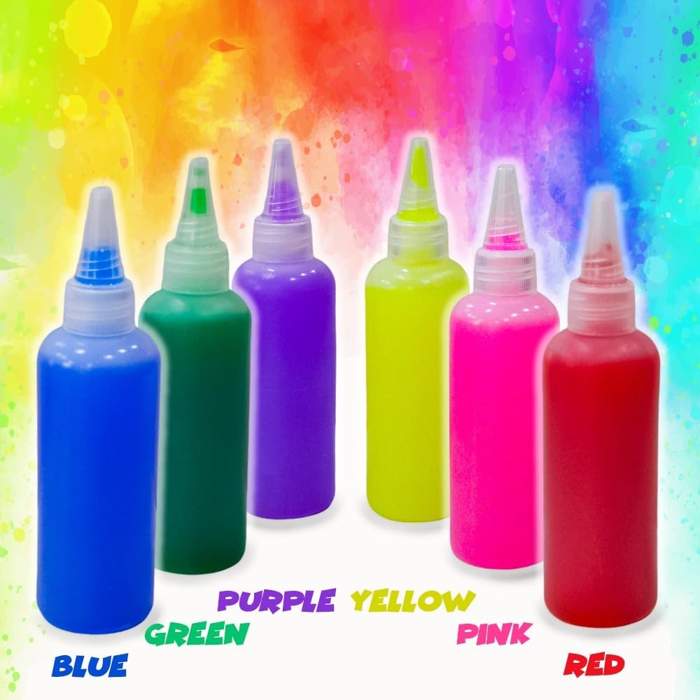 6 x Color bottles (Purple, Green, Yellow, Pink, Blue and Red