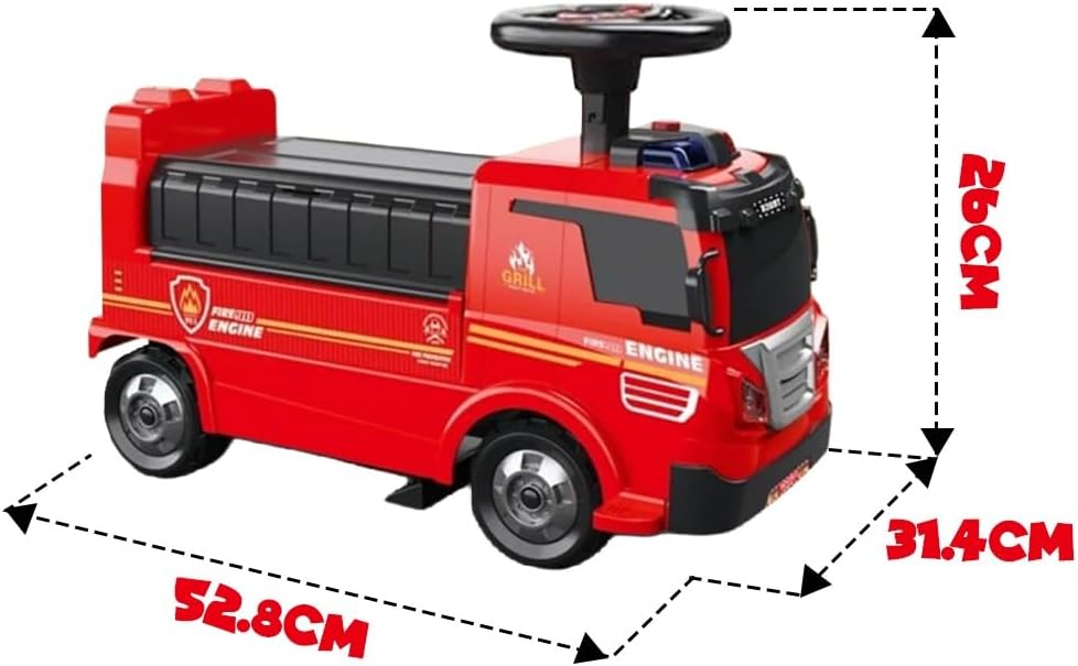 - 👶Driving Skills The realistic steering wheel and design help kids develop hand-eye coordination, motor skills, and an understanding of basic driving concepts as they steer their own fire truck.