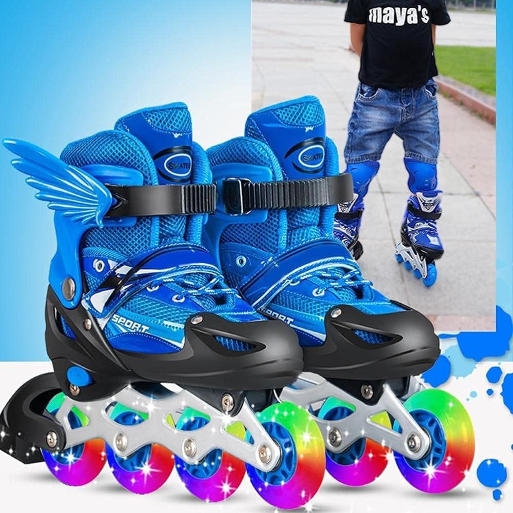 - ⛸️[Perfect for Beginners Skaters] These inline skates are the ideal choice for entry-level skaters. Perfect for young skaters just starting out, these rollerblades provide exceptional balance, support, and control, allowing kids to learn and gain confidence on wheels. Designed for comfort and support, they provide a smooth, stable ride at an affordable price point.