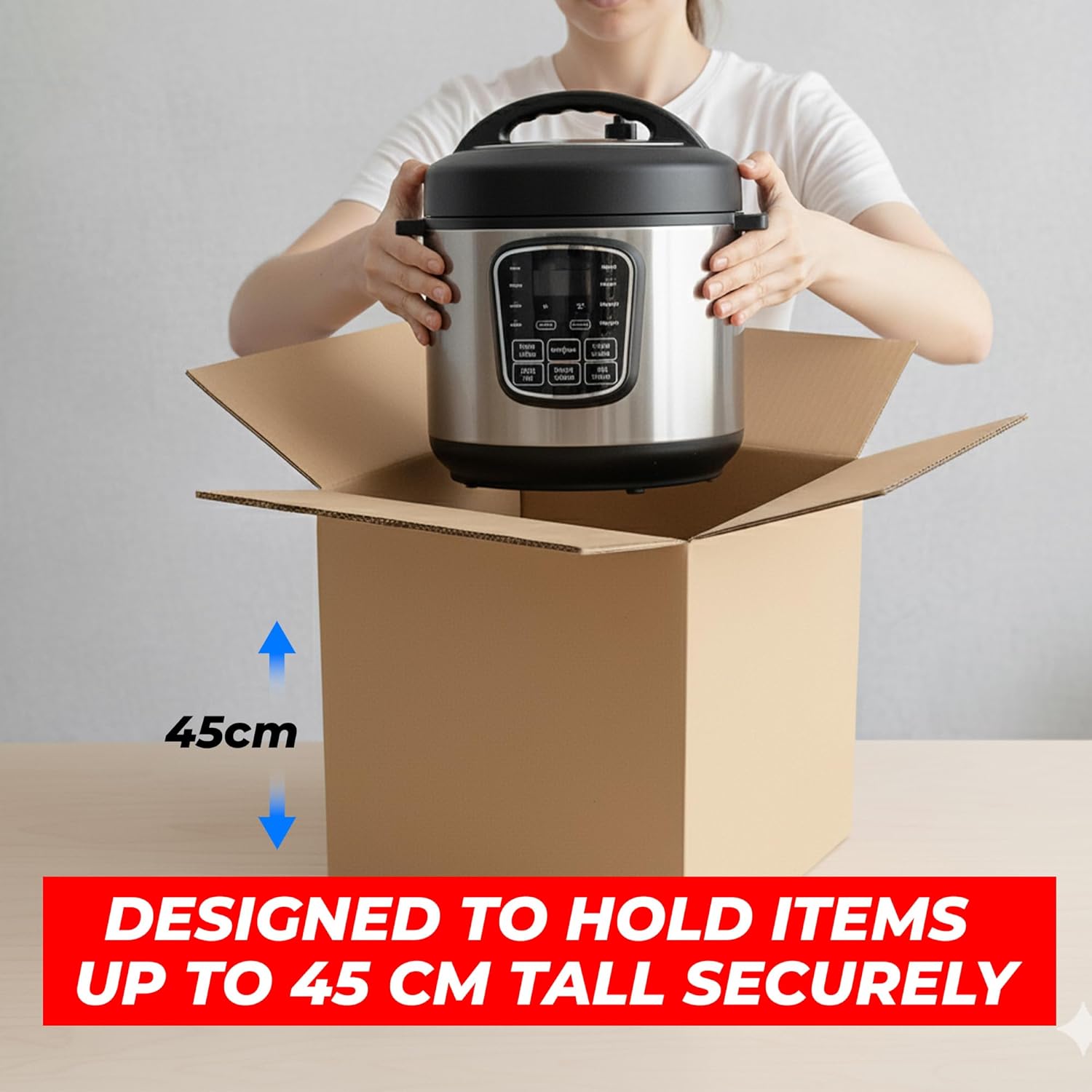 Pack of 10 Durable Boxes: Includes 10 premium-quality 5-ply cardboard boxes measuring 45 × 45 × 45 cm, perfect for parcels, packaging, or storage use.
